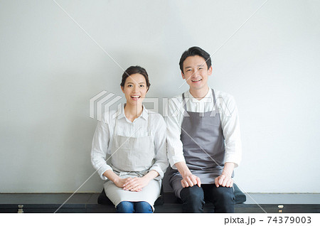 エプロンをした男女