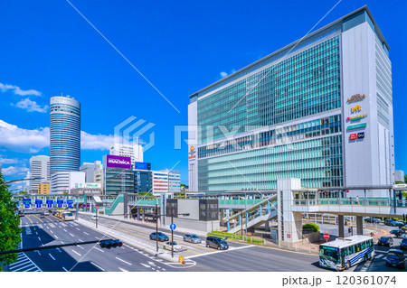 日本の横浜都市景観 新横浜駅・「新横浜ヴィスタウォーク」前の新横浜スクエアビルなどを望む=7日