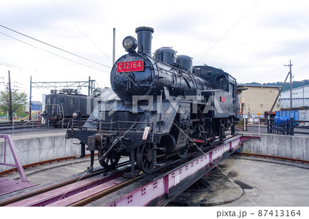 大井川鉄道の新金谷車両区、転車台に載っているC12