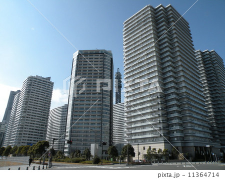 日本の横浜都市景観 横浜・リバーサイドのタワーマンション群などを望む