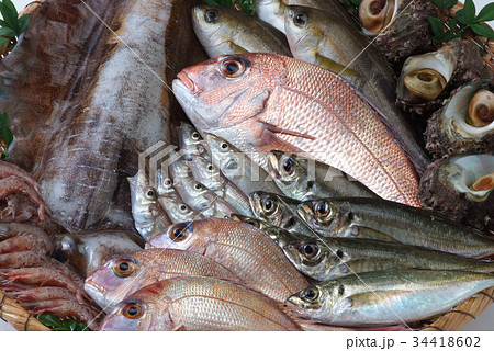 魚 魚介類 ざる盛り 新鮮食材 生魚 食べ物 海産物 鮮魚