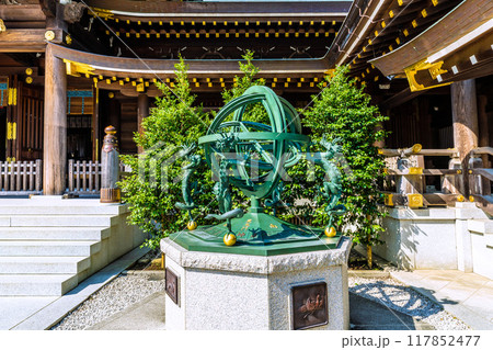 日本の寒川都市景観 相模國一之宮 寒川神社。方位盤と渾天儀…=令和6年7月21日