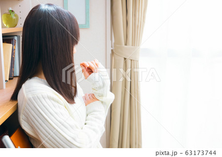 窓辺で考える女性