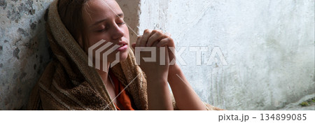 Poor young girl prayint to God