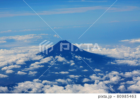 雲の間から見える富士山は青々として雄々しく裾野も綺麗に、飛行機の窓でウットリとする