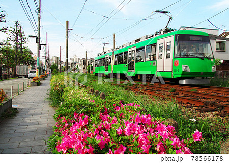 東急世田谷線|松原〜山下間を走る電車(SDGsトレイン)