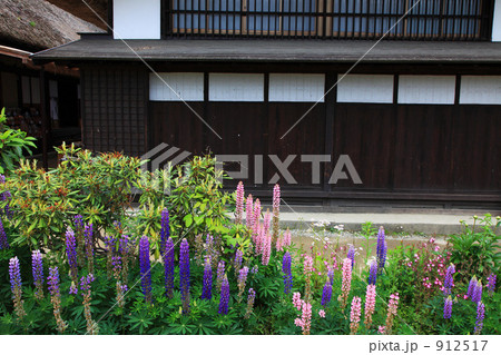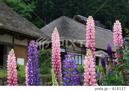 大内宿とルピナス