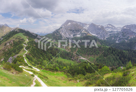 Mountain valley with tracks near Jenner mount in Berchtesgaden National Park