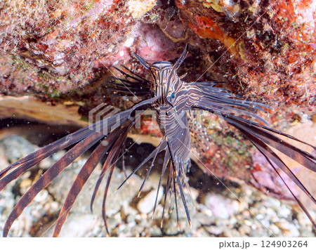 広げた羽根が美しいキリンミノ(フサカサゴ科)の幼魚。 静岡県伊豆半島賀茂郡南伊豆町中木ヒリゾ浜