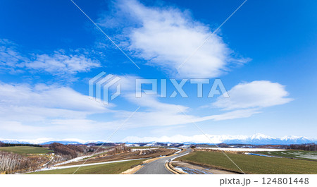 雪解けが進む春の北海道美瑛町の雄大な風景