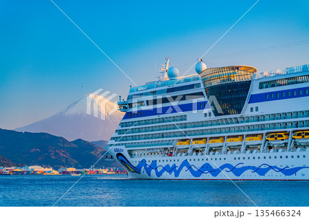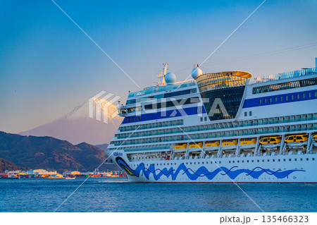 (静岡県)富士山を背に、清水港に入港・旋廻する豪華客船アイーダディーヴァ