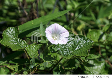 つる性植物のヒルガが雑草の密集してるところぽっり咲いていた光景