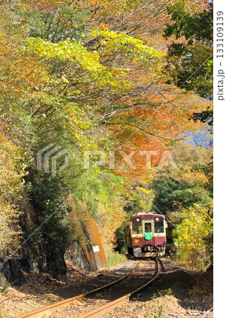 わたらせ渓谷鐵道「紅葉した木々のトンネルを抜けて」