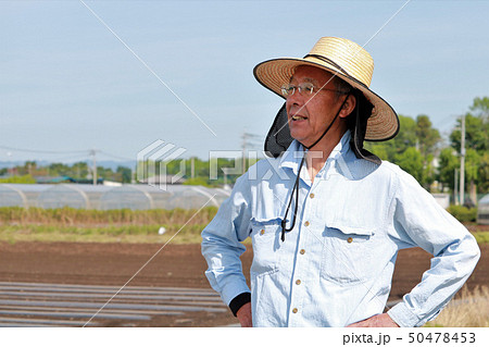 畑仕事をするシニア男性