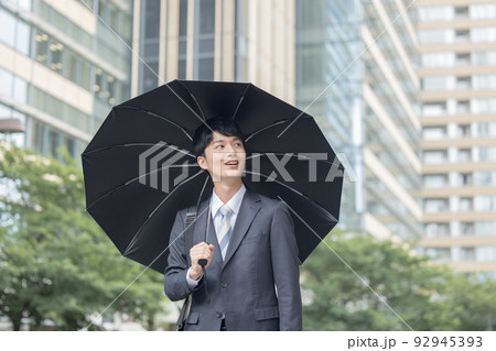 日傘をさした若いビジネスマン 日傘男子 イメージ