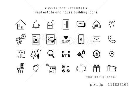不動産・住宅メーカー向けのシンプルなアイコン・イラストセット 線画白黒