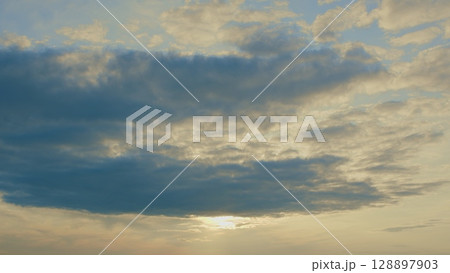太陽の斜光線を浴びて輝く雲【背景素材としての夕景造形編】