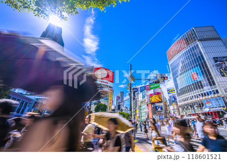 日本の東京都市景観 暑さ続く…。秋祭り…インバウンド続く…外国人観光客らで賑わう渋谷=15日