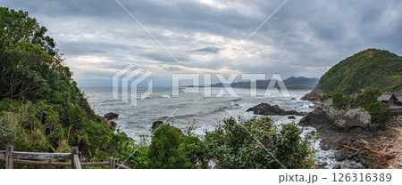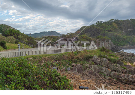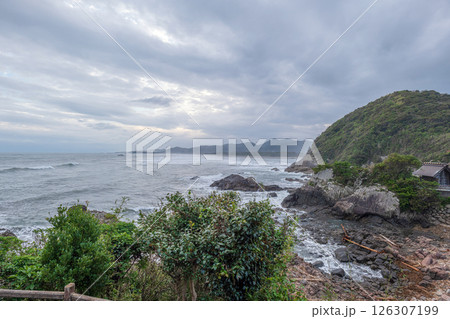 宮﨑 大御神社 境内から海岸線を望む