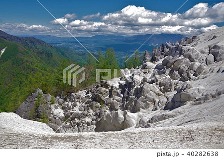 日向山・ガンガワラの岩峰と新緑の山並み