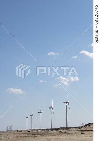 茨城県日川浜海岸から風力発電の風車が見える風景