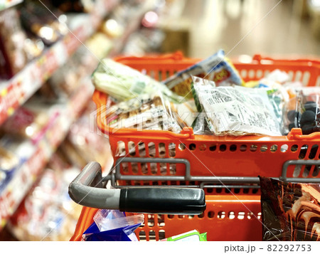 防災備蓄の買い物買い足し|男性が買い物かごに非常食ご飯を入れる