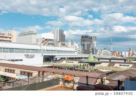 日本の東京都市景観 JR日暮里駅(南改札口)や京成電鉄日暮里駅などを望む