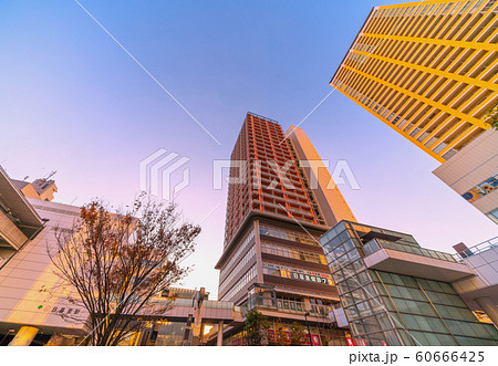 日本の東京都市景観 太陽光に映える日暮里駅前