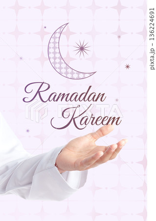Celebration of Ramadan with a hand gesture and text that wishes Ramadan Kareem