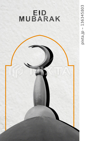 Minimalist illustration of a dome with a crescent moon on a textured background, perfect for Eid Mubarak celebrations. Eid al-Fitr or Islamic background