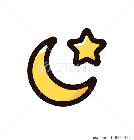 星と三日月のイラストアイコン(信仰・中東・イスラム文化素材)