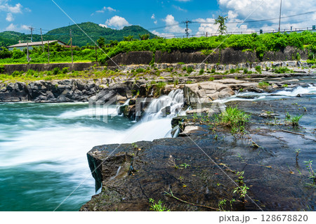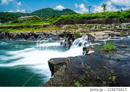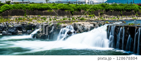 新緑の三日月の滝 パノラマ 【大分県日田市】