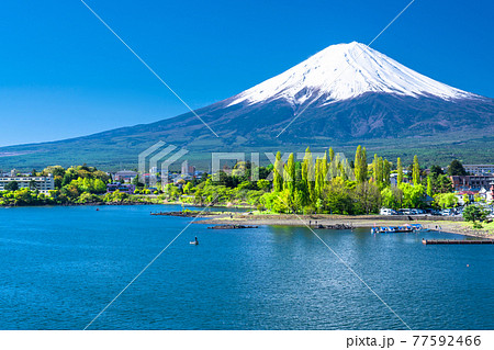 《山梨県》初夏の富士山・河口湖湖畔の眺め