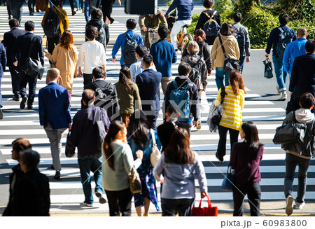 日本の東京都市景観 逆走…この横断歩道を突っ切り…次は斜め横断、もはや何でもあり…=渋谷