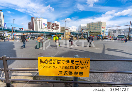 日本の横浜都市景観 驚愕の逆走自転車。そこどこけ・自転車様のお通りだ!! =横浜市港北区の大倉山駅前