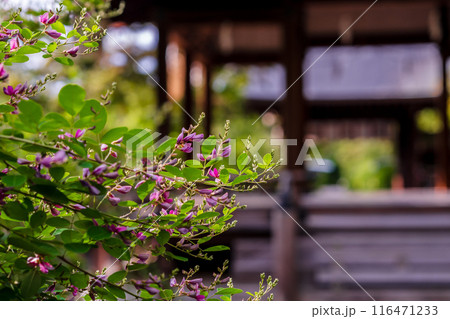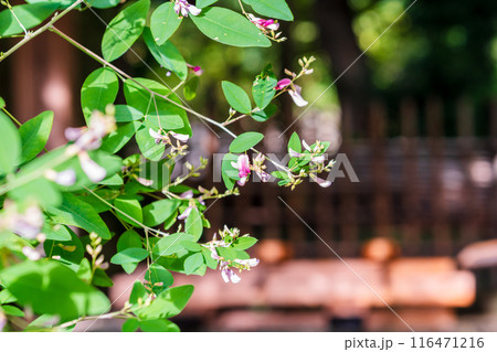京都市上京区梨木神社に咲く清楚な秋の七草萩を撮影