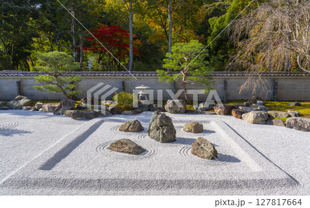 秋の京都 金福寺 紅葉に包まれた枯山水庭園
