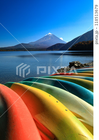 本栖湖の湖畔より望む夏富士 山梨県河口湖町本栖