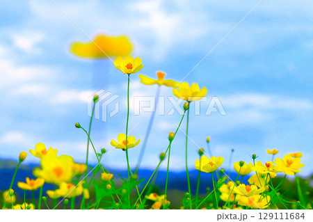 青空とレモンイエローの黄花コスモス