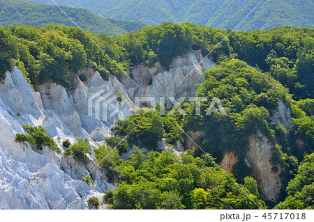東北・白神山地・日本キャニオンの不思議な眺め・全景(1)