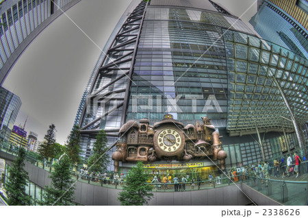 日本の東京都市景観 外国人観光客に人気のスポット。外国人観光客らで賑わう汐留のシンボル・からくり時計