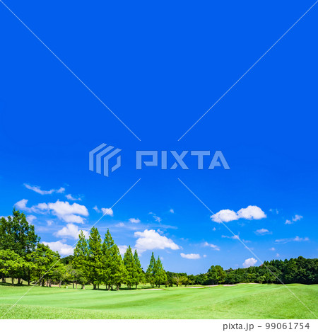 夏 から 秋 の 青空 と ゴルフ場 【 アウトドア レジャー の イメージ 】