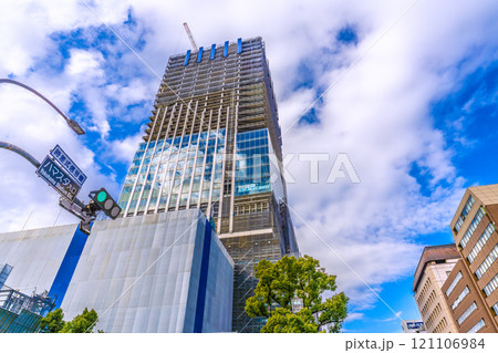 日本の横浜都市景観 日本一おめでとう…関内駅前の横浜市旧市庁舎街区活用事業新築等工事などを望む