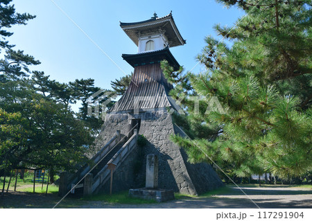 【香川県】晴天下に聳え立つ日本一高い(高灯籠)
