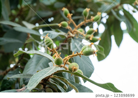 Japanese medlar green fruit plant loquat growing