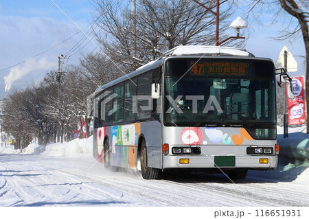冬の旭山動物園に向かう旭川電気軌道の路線バス