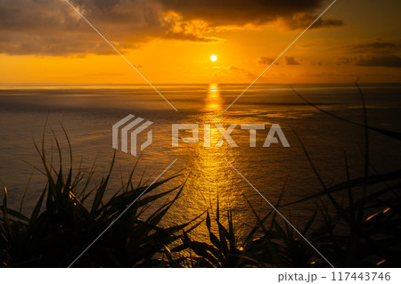 与那国島のマジックアワーに光る天使の梯子
