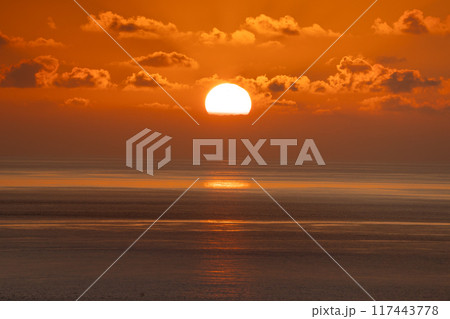 日本最後の夕陽が見える丘から見た夕陽