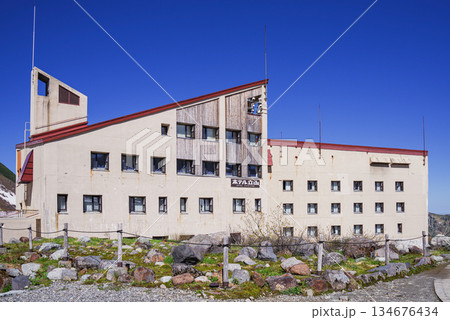 快晴のホテル立山と青空 立山黒部アルペンルート室堂の風景(日本最高所のホテル)