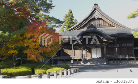秋の京都高雄 神護寺 紅葉に包まれた金堂と石段